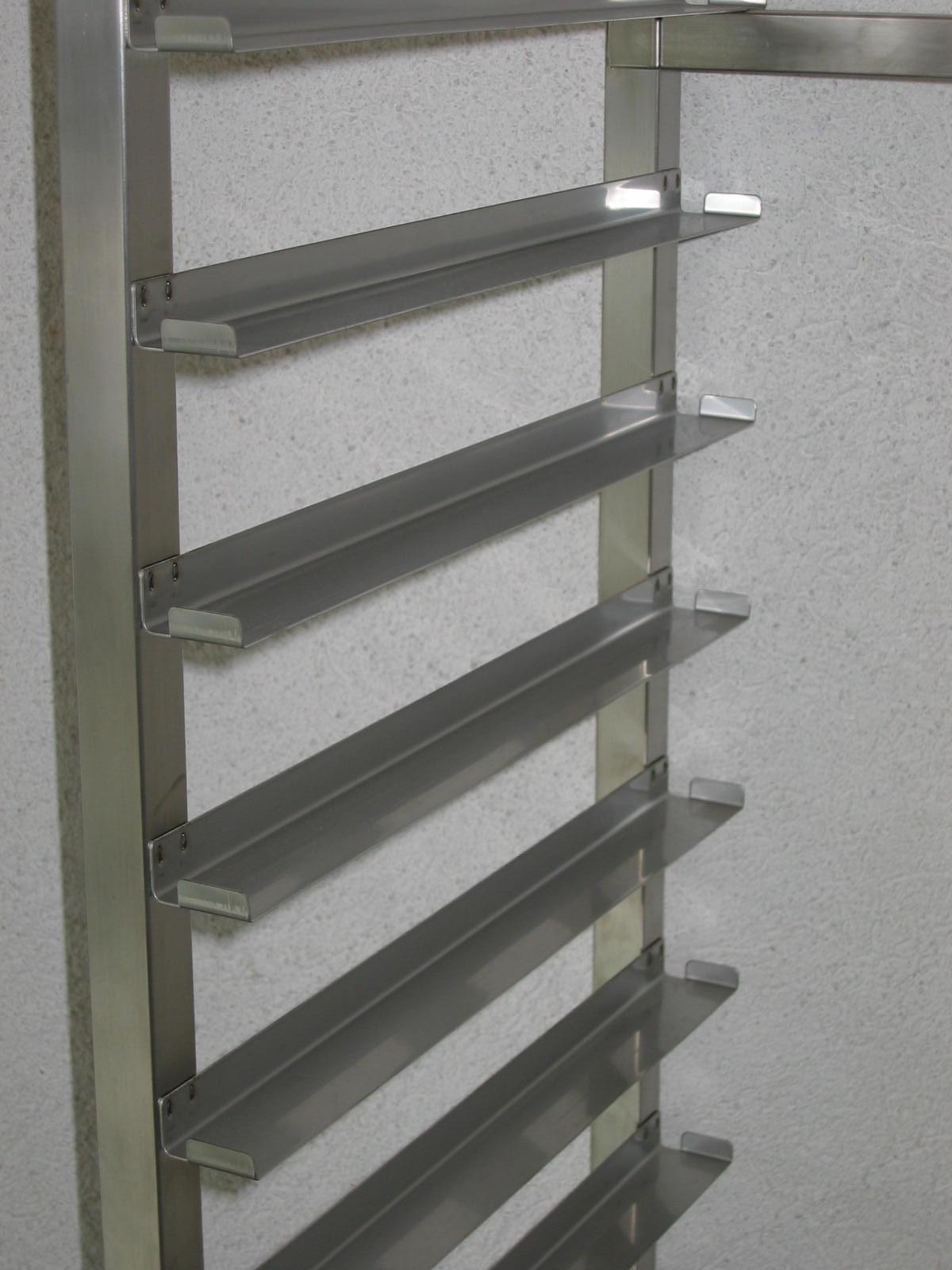 Stabiler komplett verschweißter Backwagen aus Edelstahl-Vierkantrohr, gekantete Edelstahlauflagen mit dem Rahmen dauerhaft verschweißt. Passend für MIWE Roll-In 60/80 mit 18 Auflagen für Bleche 78/58. Einführkonsole mit Mittelloch-Arretierung und verschraubtem Anschlag. Der Anschlag in der Konsole kann auf beide Seiten des Zentrierloches montiert werden, daher können Sie wählen welche Seite des Wagens zuerst auf die Kugel fährt. Oder Sie demontieren den Anschlag ganz, dann können Sie von beiden Seiten her einfahren.