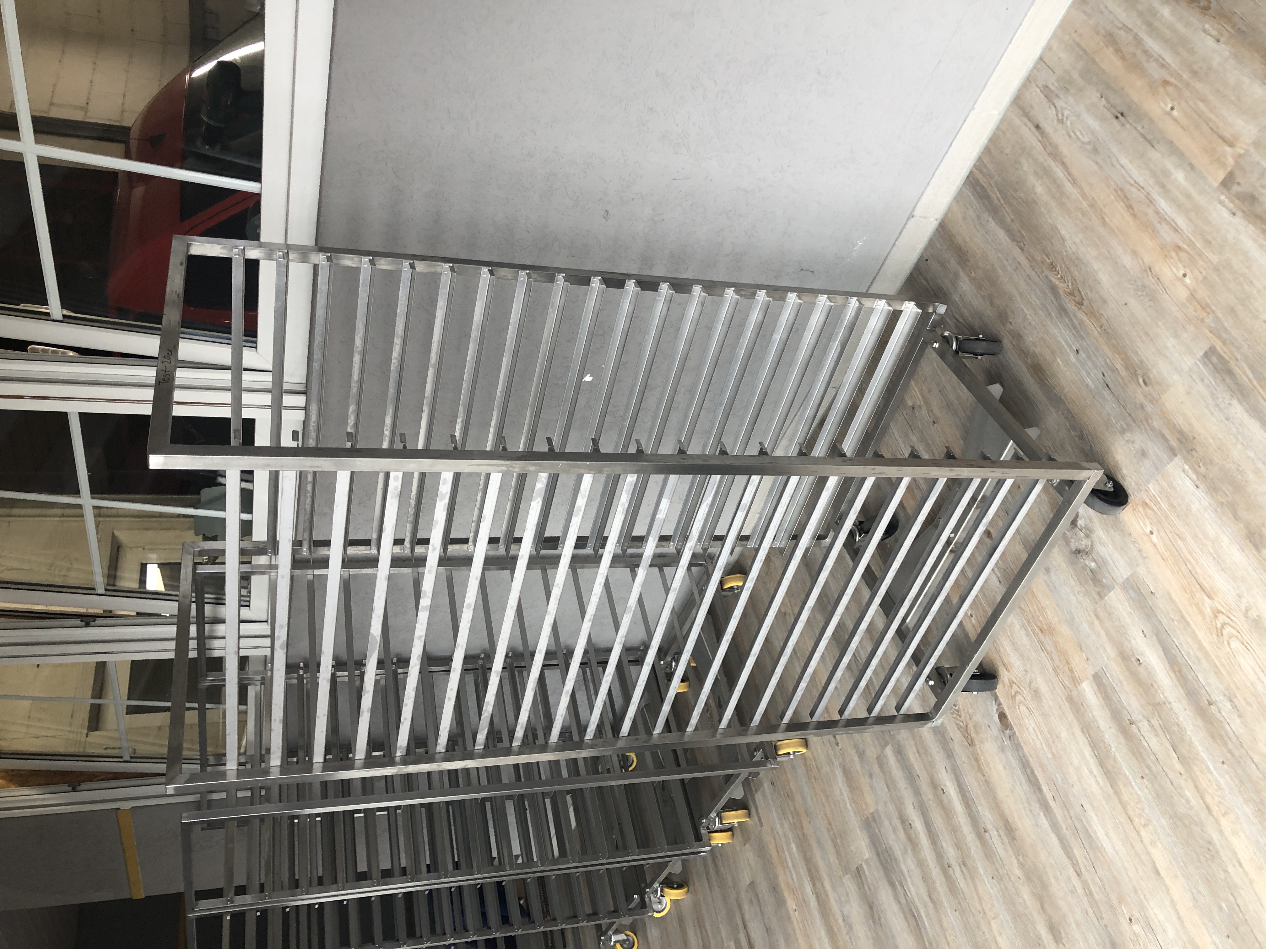 Der Wagen war nur 3 mal zum Test in einem Backofen zum backen. Da der Kunde sich jedoch für das Blechmaß 98/58 entschieden hat, hier jetzt im Abverkauf.
