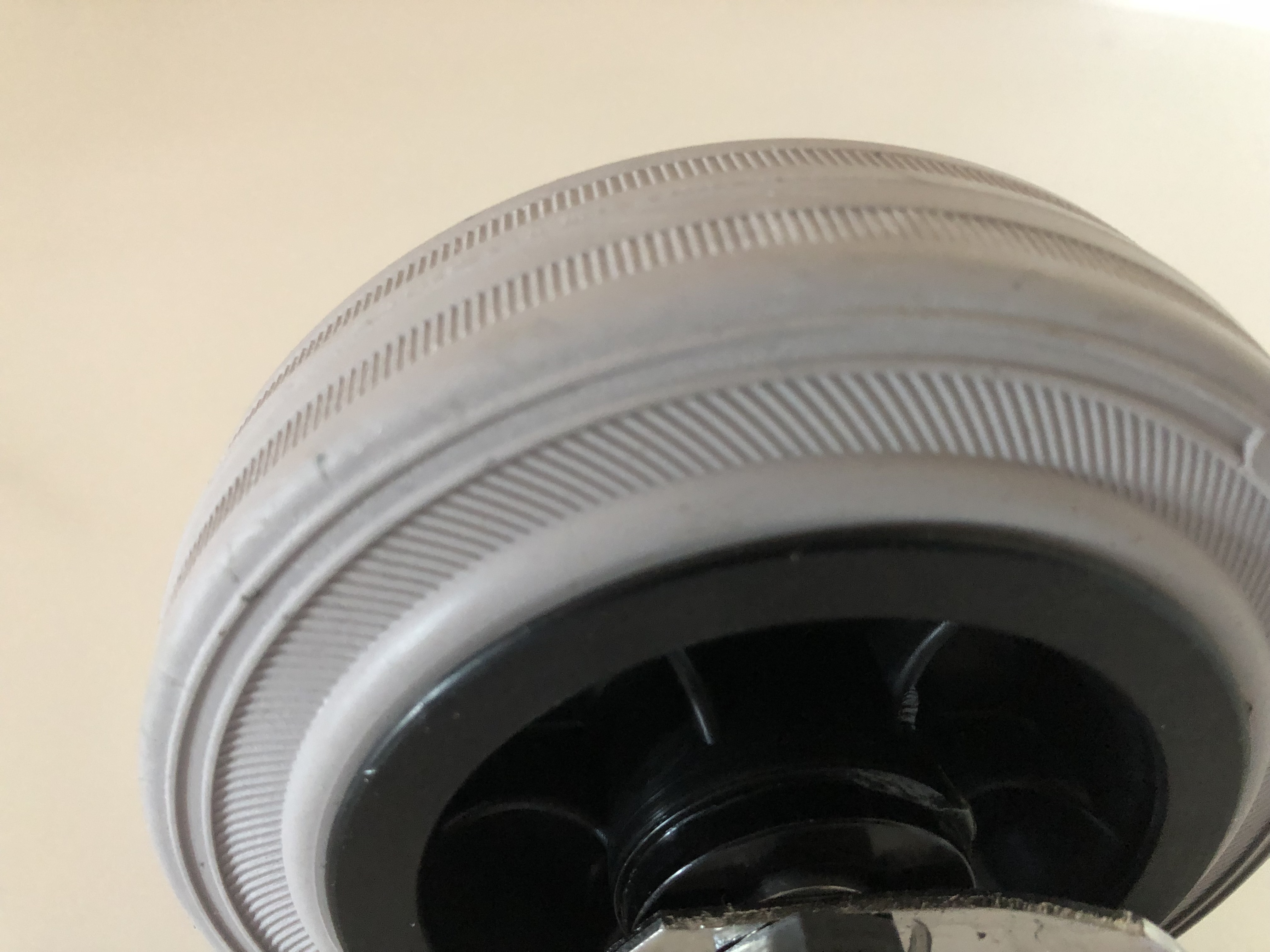- Graues Gummi-Laufrad auf einer stabilen Felge aus Kunststoff