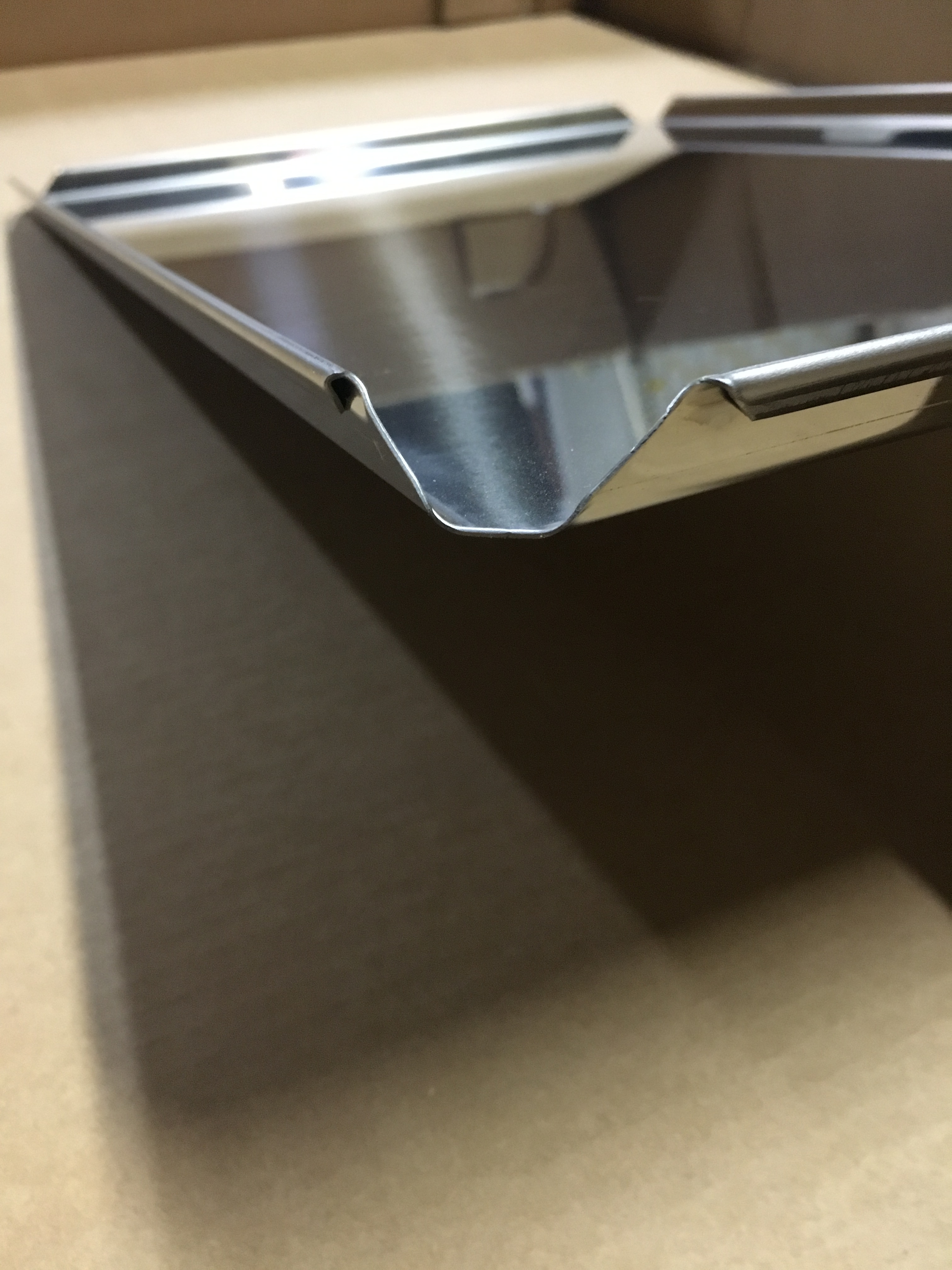 4 Rand Blech aus hochglanzpoliertem Edelstahl, Blechmaß 60cm x 40cm, 1mm stark, Randhöhe 16mm, 4 Seiten Rand 80° zusätzlich gebördelt, offene Ecken, Hochglanzpoliert mit sehr glatter Oberfläche, daher leicht zu reinigen. Bestens geeignet auch für andere professionelle Einsatzzwecke. Kunden von uns verwenden diese Bleche beispielsweise als: