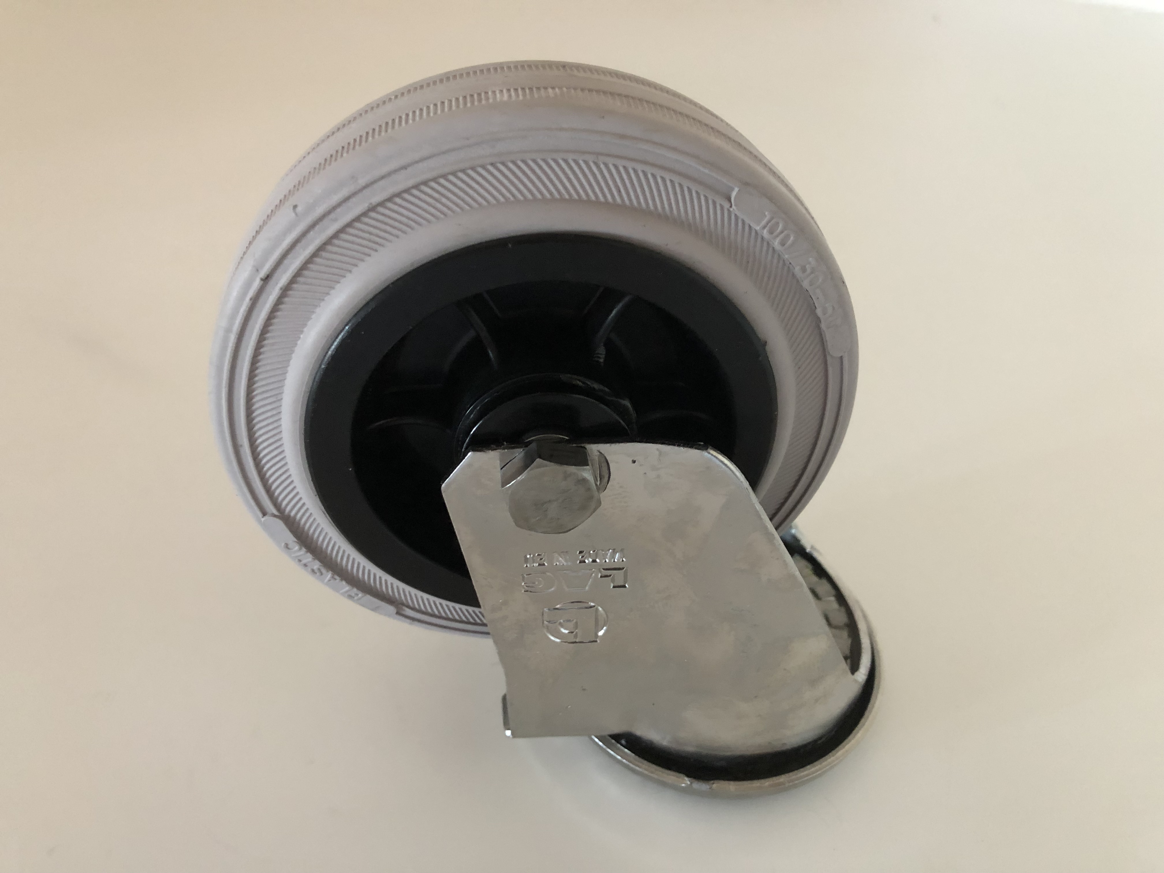 - Graues Gummi-Laufrad auf einer stabilen Felge aus Kunststoff